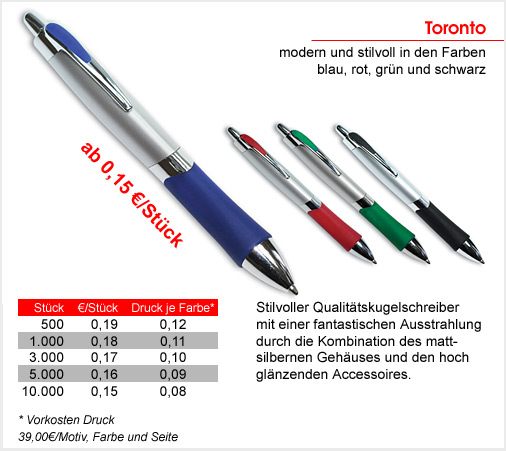 Bitte senden Sie mir bitte für das Kugelschreibermodel "Toronto" ein unverbind- liches Angebot zu.